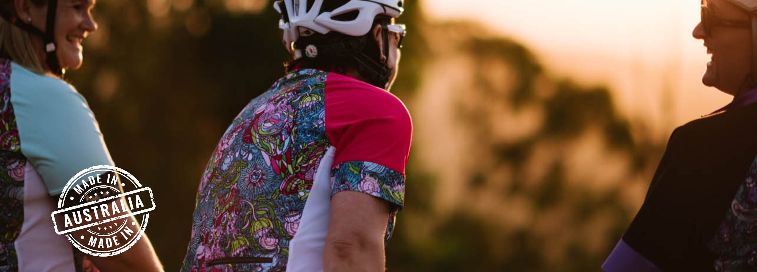 Ride in comfort and confidence with padded bike pants, bibs with pockets, jerseys and layers, made in Brisbane and tailored for women’s bodies in sizes 6–24.