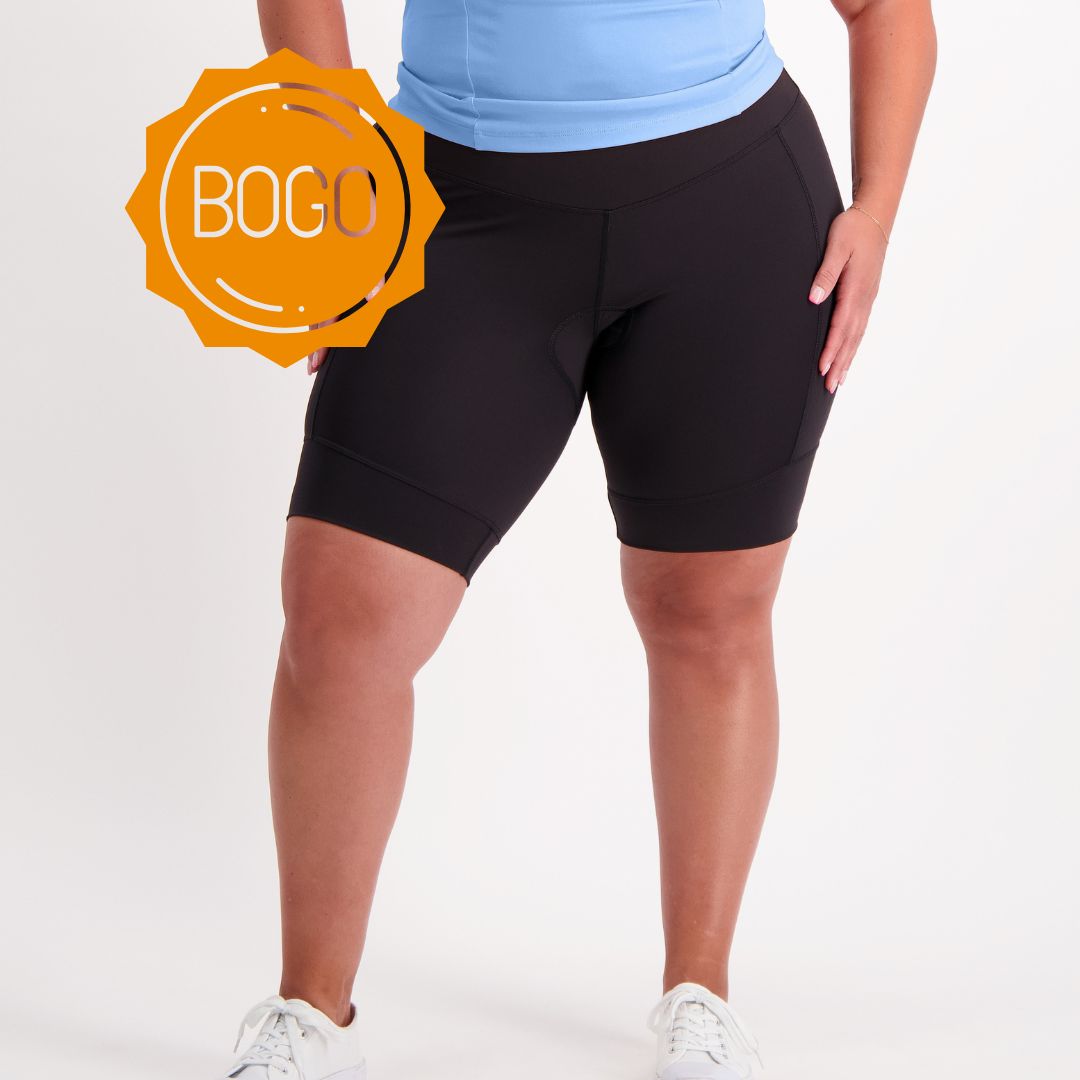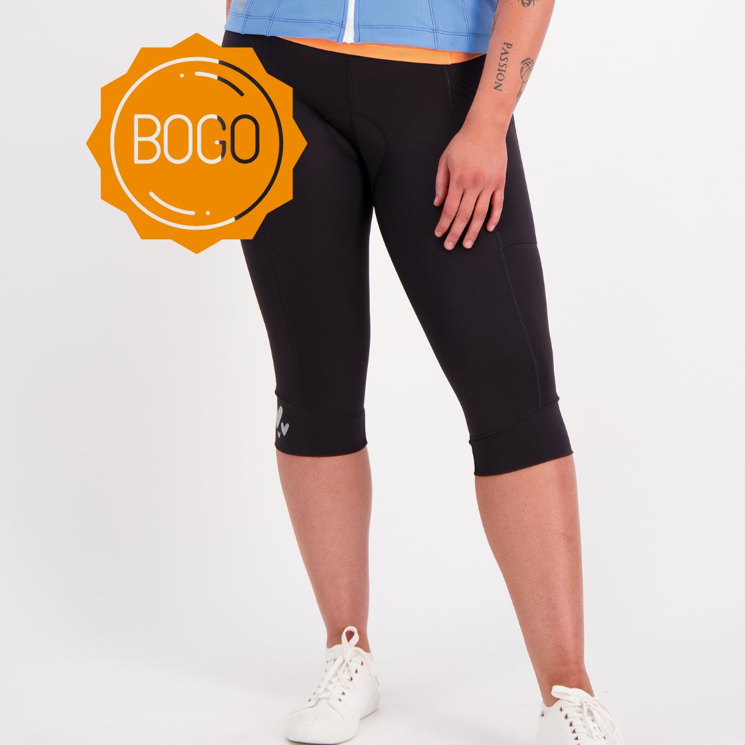 Shop our Limited Fabric BOGO: women’s padded bike shorts and 3/4 pants in soft, supportive ECONYL® nylon and LYCRA®. Same trusted fit and Elastic Interface chamois, inclusive sizes AU 6–24 with pockets. Mix and match styles and sizes — add two qualifying items to unlock BOGO. Available while this fabric lasts.