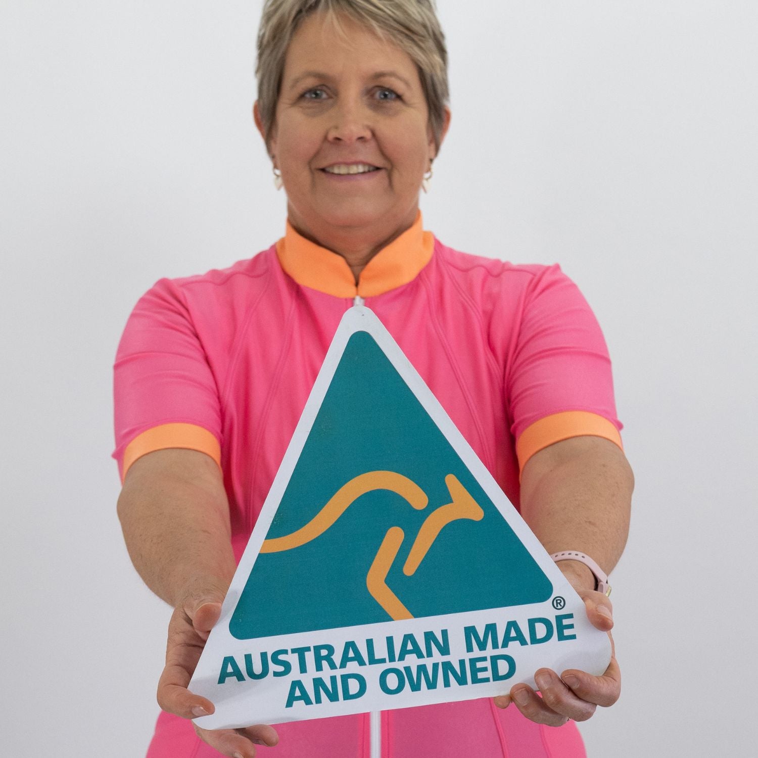Birds on Bikes is licensed to use the Australian Made logo. We design and make our women’s cycling apparel in Brisbane in sizes 6–24, using premium chamois and performance fabrics. We produce locally with fair pay, safe workplaces and respectful partnerships.