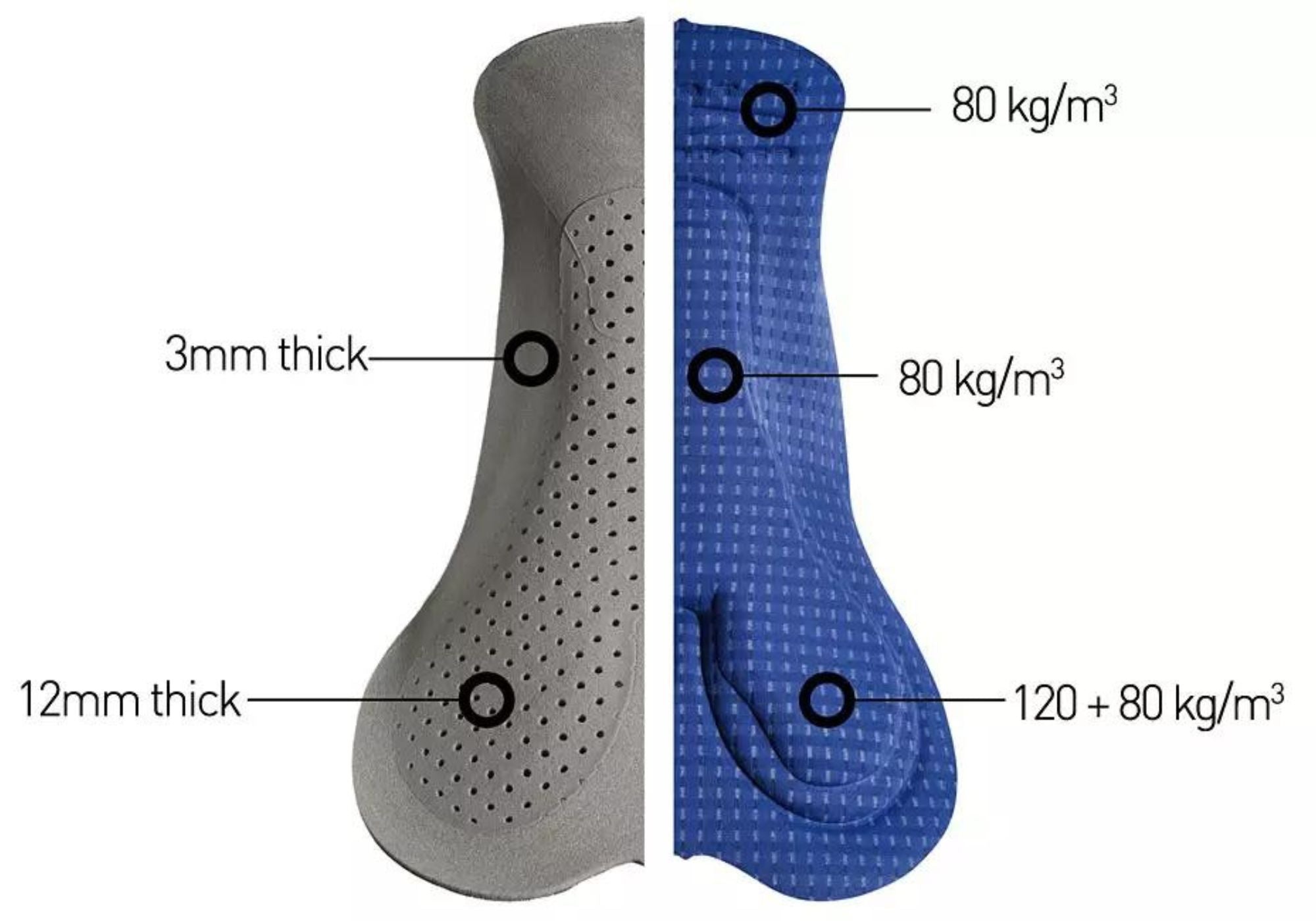 The perineal area is designed to deliver great fit and stability in saddle. The pelvic track, which traces where the pelvic bones matches the saddle during the pedal stroke, is particularly anatomic in support of this area. The perfect combination of perforated foams and different densities assures extra breathability and freedom of movement. LIÈGE HP WOMEN features Elastic Interface®ECO X-Fifty fabric, with a REPOC construction delivering cooling functions and quick dry.